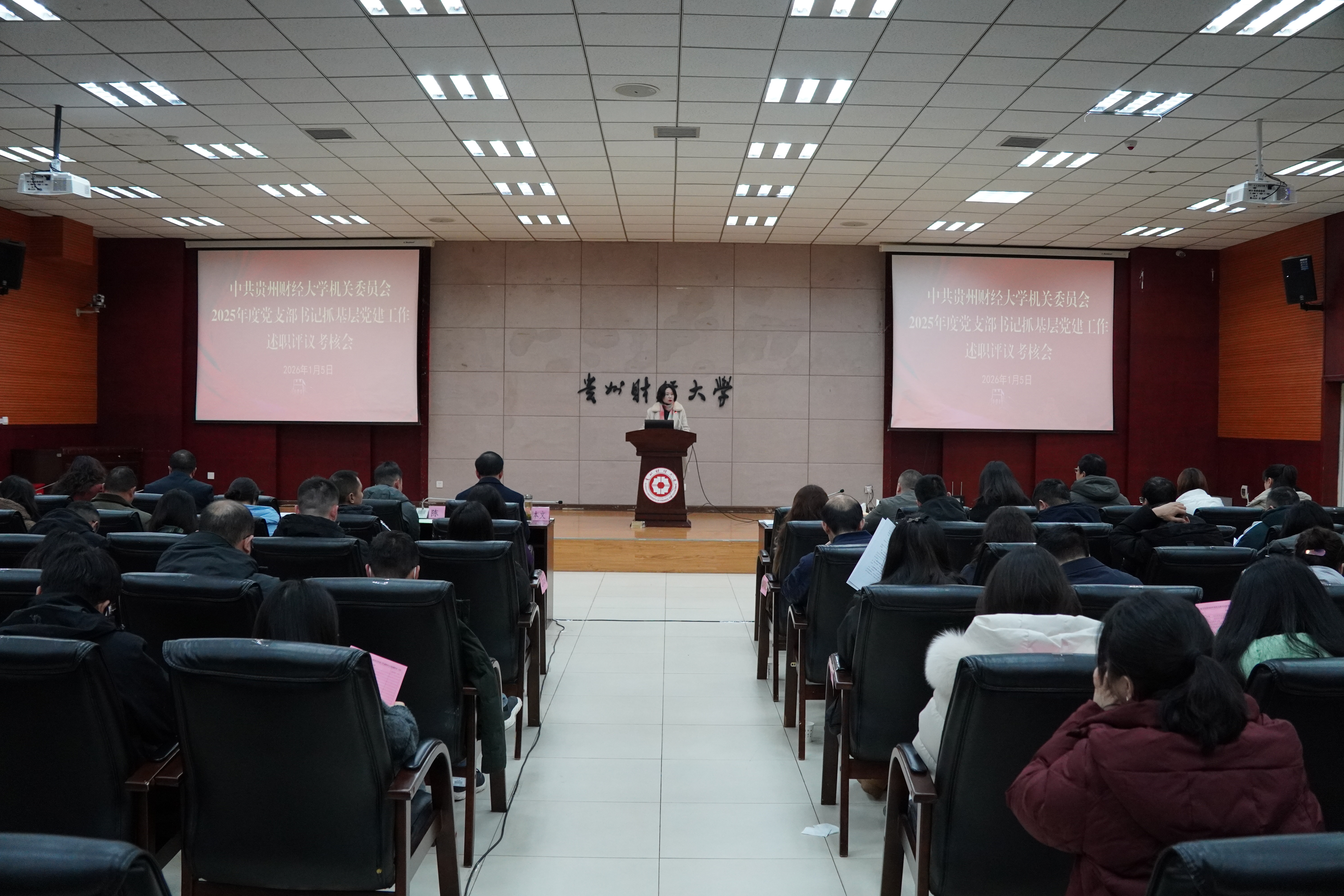 会上,机关党委办公室党支部、党委组织部党支部、党委统战部党支部、党委学生工作部党支部、科研处党支部、国有资产管理处党支部、后勤处党支部、合作促进处(校友会、基金会)党支部、贵州财大资产经营管理有限公司党支部九个党支部书记围绕一年来履职情况、存在问题和下步打算等进行了现场述职,其他21位党支部书记进行书面述职。按照“述职一个、点评一个”的方式,机关党委委员逐一对现场述职的9家单位进行点评,既肯定党建工作取得的成效,又指出存在问题和薄弱环节,并提出工作建议。随后,与会机关党委委员、各党支部书记、党支部委员代表、机关普通党员代表对各党支部书记抓基层党建述职情况进行现场测评。